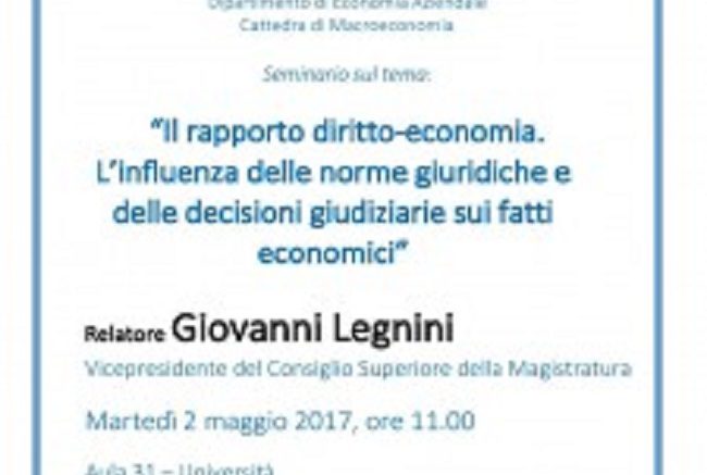 “Il rapporto diritto-economia. L’influenza delle norme giuridiche e delle decisioni giudiziarie sui fatti economici”, il titolo del seminario che si è svolto al Dipartimento di economia Aziendale dell’Università d’Annunzio di Pescara.