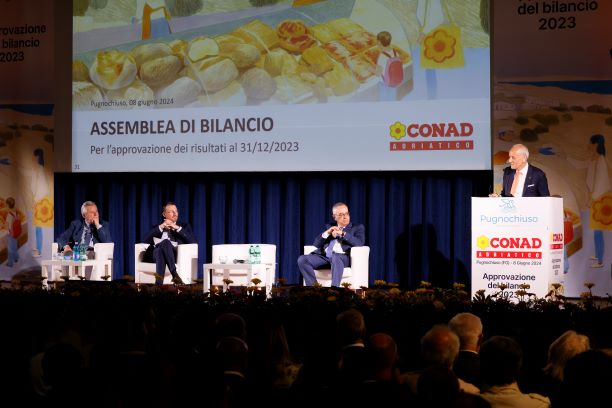 L’assemblea di bilancio di Conad Adriatico, svoltasi ieri a Monsampolo del Tronto, ha presentato ai suoi soci e agli stakeholder i risultati positivi dell’ultimo anno. La Cooperativa, infatti, archivia il 2023 con un fatturato di 2.134 milioni di euro (+6,65% rispetto al 2022), 323,05 milioni di euro di patrimonio netto consolidato e una quota di mercato del 17,90% nel territorio di competenza. Negli ultimi dieci anni, Conad Adriatico ha mantenuto un trend di sviluppo costante, con un aumento complessivo del fatturato del 131%, consolidando la sua posizione di leadership sul mercato.