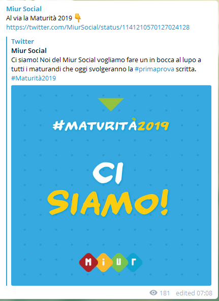 “Il tema di storia veniva svolto solo dall’1,7% degli studenti. Non è stato questo governo a decidere di toglierlo dai temi della maturità. Voglio comunque rassicurare dicendo che sarà ugualmente presente in questo esame. Non si può argomentare un testo senza conoscere la storia”, ha affermato il ministro postando un video di in bocca al lupo ai maturandi “Siate consapevoli che ognuno di noi ha il compito di contribuire a rendere migliore questo mondo”.