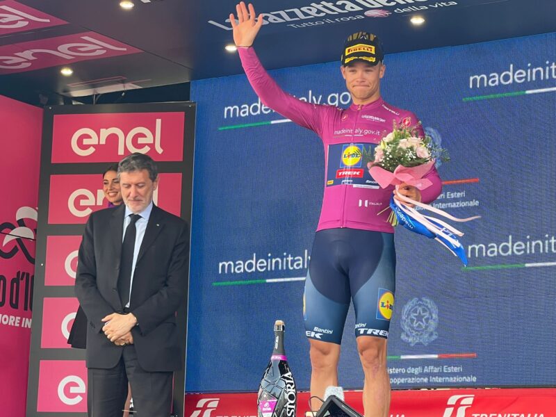Per gli uomini di classifica è stata una giornata tutto sommato tranquilla. Tadej Pogacar (in foto sul podio di Francavilla al Mare) ovviamente conserva la Maglia Rosa, e dietro Geraint Thomas rosicchia 2″ a Daniel Martinez con la volata allo sprint intermedio, e si mette a 16″ dal secondo posto. Tiberi, il migliore degli italiani con il 5° posto nella generale, è la nuova maglia bianca dopo il ritiro di Uijtdebroeks.