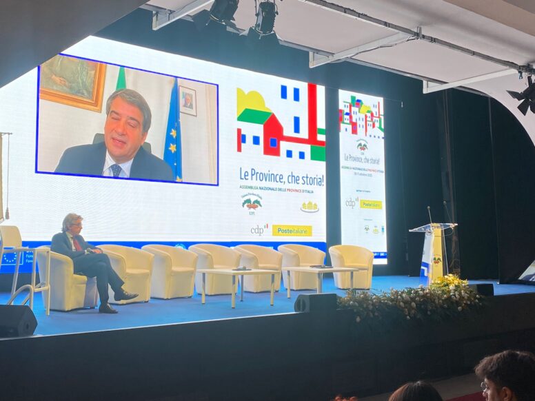 La seconda e conclusiva giornata dell’assemblea nazionale dell’Upi, l’Unione delle province italiane, è stata ospitata dal ridotto del teatro comunale. Dopo la presenza ieri del presidente della Repubblica Sergio Mattarella quella di oggi è stata la giornata dei Ministri. Il Ministro Raffaele Fitto per parlare della sfida del Pnrr si è collegato in video. Era, invece, in presenza il Ministro della Pubblica Amministrazione Paolo Zangrillo. In collegamento anche il vice premier Salvini (nella foto in basso).