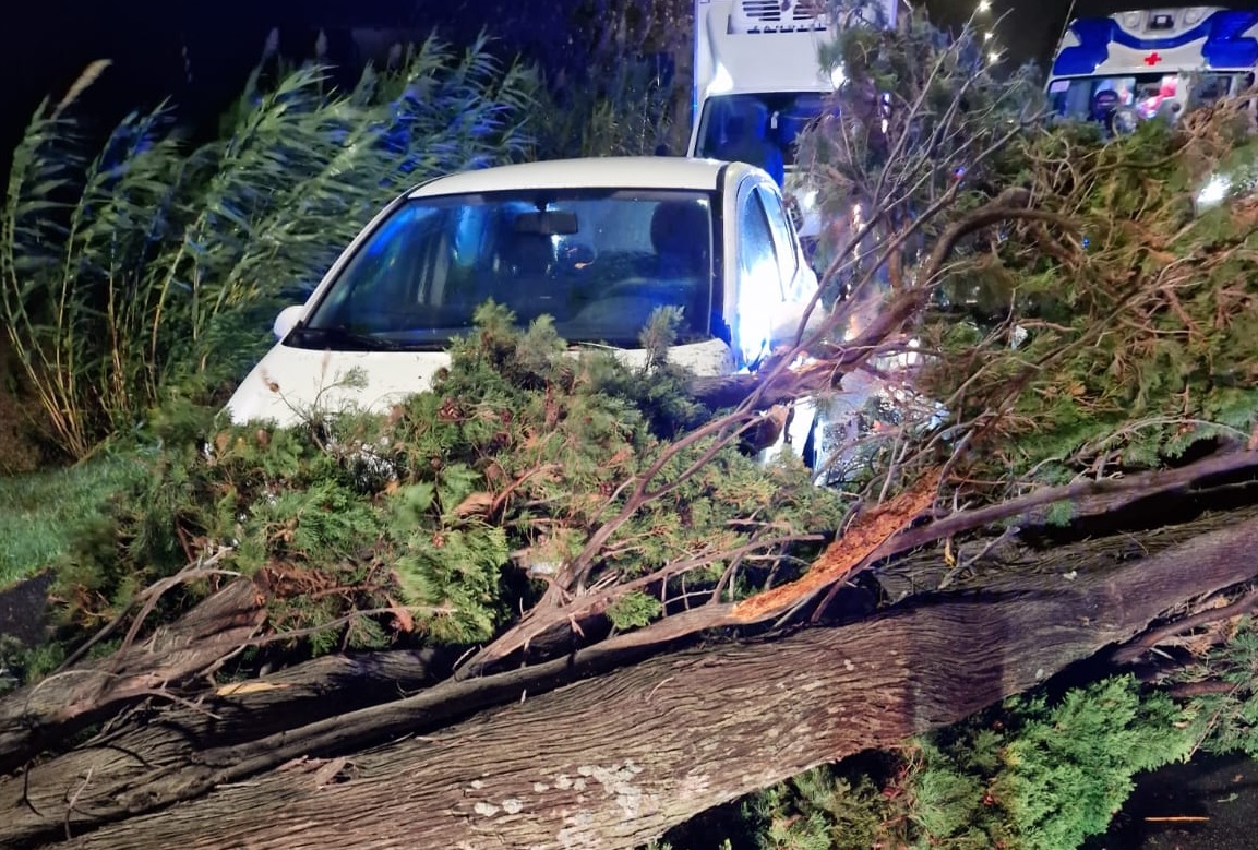 Rischio tragedia a Spoltore dove un grosso pino è crollato sulla strada. La caduta è avvenuta in pieno centro cittadino, per fortuna sullo spazio tra due abitazioni. L’albero che ha almeno 50 anni ha tagliato la strada bloccandola e danneggiando un muro di recinzione: poco più in là sarebbe caduto sulle abitazioni. Le raffiche hanno superato anche gli 80 km/h.