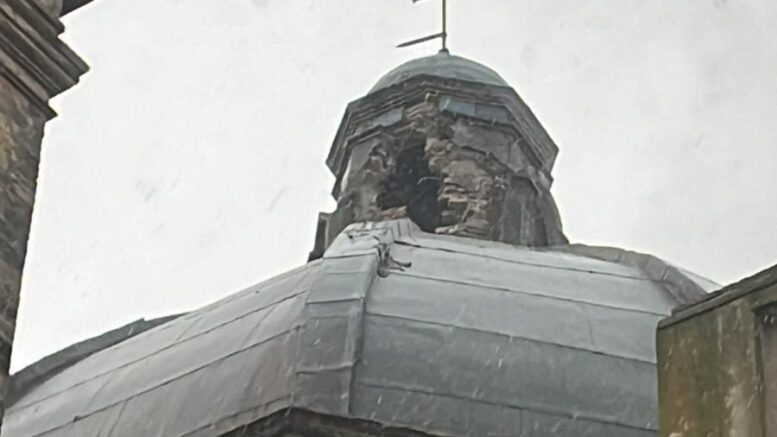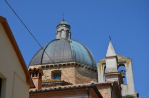 A Roseto un crollo dalla cupola della chiesa di Montepagano con danni all’interno. Un fulmine avrebbe scaricato la sua forza sulla parte alta della cupola ( come vedete in foto).