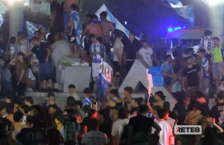 Nonostante non ci fossero maxi schermi in città, i punti di ritrovo dei tifosi biancazzurri scesi in strada a festeggiare, o di ritorno dallo stadio Adriatico sono quelli tradizionali delle altre promozioni, a partire dalla nave di Cascella e piazza Salotto, dove è esploso l’entusiasmo dei tifosi, discretamente controllato da un attento dispositivo delle forze dell’ordine. La festa non si è spenta prima delle luci dell’alba, ed è stata raccontata dagli inviati di Rete8 in una diretta non stop.