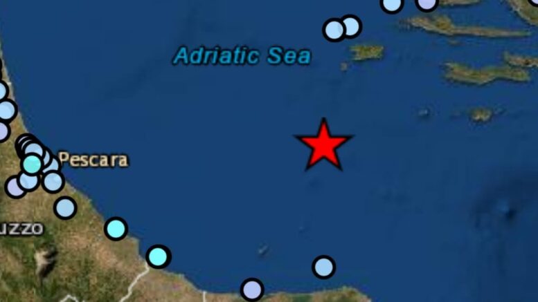 Una scossa di terremoto di magnitudo 5.5 è stata registrata dagli strumenti dell’Istituto nazionale di geofisica e vulcanologia nel mare Adriatico centrale. La scossa è stata avvertita in Abruzzo, Molise e Puglia, in particolare nelle località della costa, intorno alle 14.47, soprattutto ai piani alti delle abitazioni. Numerose le telefonate ai Vigili del Fuoco.