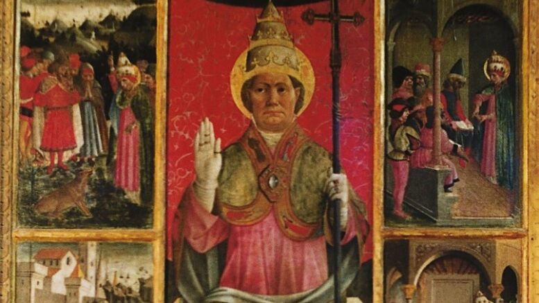 Si tratta di un dipinto a tempera su tavola raffigurante nella parte centrale San Silvestro Papa ritratto seduto, con ricchi paramenti, la tiara e il pastorale. Nelle tavole laterali sono presenti episodi della vita del Santo: il miracolo del toro, il miracolo del drago, la disputa con i rabbini e il battesimo di Costantino. Recuperata nel marzo del 2016 a seguito di una indagine dei Carabinieri della Stazione di Roma San Pietro e dei Carabinieri del Tutela Patrimonio Culturale di Roma, in quella occasione furono ritrovati in varie parti d’Italia (province di Roma, Milano e Napoli) molteplici beni d’arte tra i quali il San Silvestro, cinque persone tra collezionisti ed antiquari vennero indagati per ricettazione.