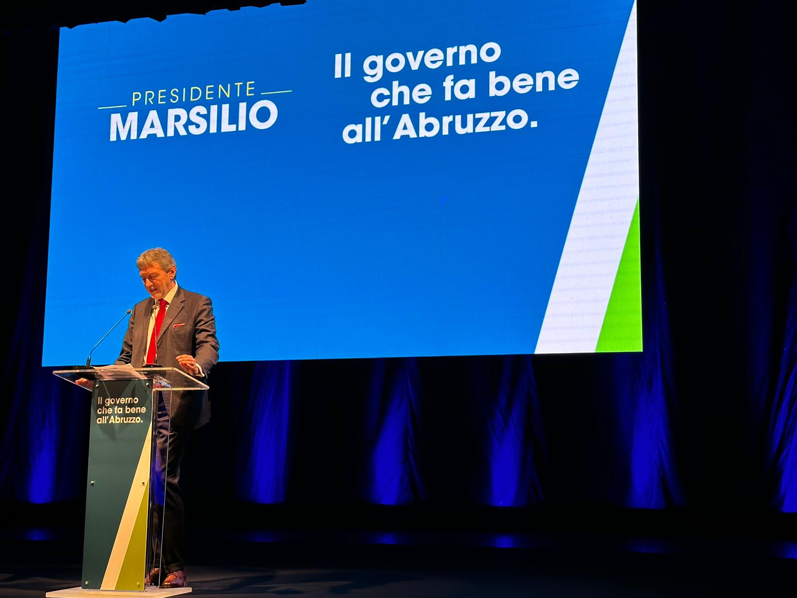 In platea il presidente Marsilio a cui sono andati i ringraziamenti dei sei coordinatori per il lavoro svolto nei 5 anni di governo regionale: è, poi, la volta di un video con la voce stessa del governatore che racconta quanto portato avanti nel primo mandato e quanto si vorrà portare avanti. Marsilio, passeggiando tra i luoghi simboli dell’Abruzzo, parla di infrastrutture, leggi, sociale, sport, cultura, economia: poi un collage di foto a riassumere cinque anni.