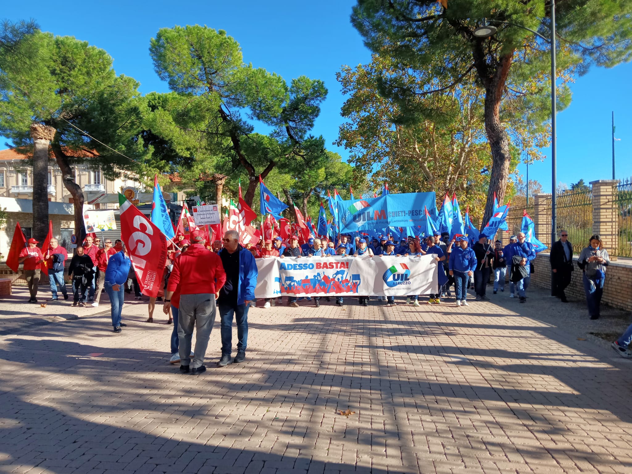 Sono state stimate in circa 3.000 persone i partecipanti allo sciopero generale regionale d’Abruzzo a Lanciano. I lavoratori e le lavoratrici sono giunti con 30 autobus e numerose corse di treni speciali dall’intera regione. La manifestazione si è aperta alle 10:35 partendo da viale delle Rose percorrendo poi Corso Trento e Trieste per approdare a Piazza Plebiscito con un lungo percorso che è stato totalmente riempito dai manifestanti. Per la Uil la segretaria nazionale Ivana Veronese, che farà l’intervento conclusivo, Michele Lombardo, segretario regionale, e Nicola Manzi, coordinatore regionale dei metalmeccanici. Per la Cgil presente il segretario regionale Carmine Ranieri. Altri ospiti sono Fabiola Ortolano, segretario generale Uil-Scuola Abruzzo, il consigliere regionale del Pd, Silvio Paolucci, il segretario regionale del Pd, Daniele Marinelli, il consigliere regionale Francesco Taglieri, Chiara Pupi, segretaria generale Uil-Temp Abruzzo in rappresentanza degli autonomi e somministrati, inoltre il segretario nazionale di Rifondazione Maurizio Acerbo, e il candidato presidente alle Regionali, Luciano D’Amico.