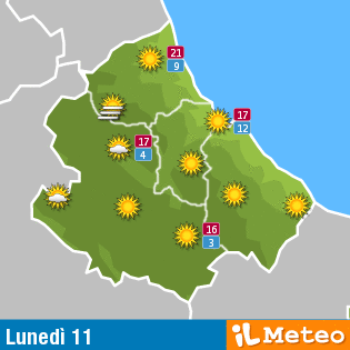 Teramo: cielo sereno, temperatura tra i 9° e i 21°, vento debole.