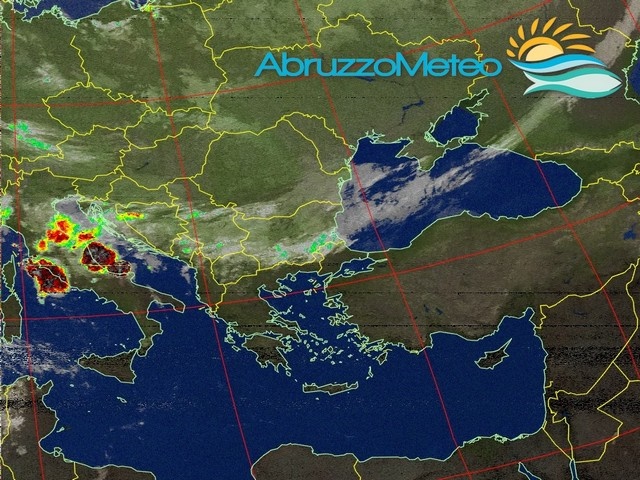 PREVISIONE: Sulla nostra regione si prevedono condizioni iniziali di cielo molto nuvoloso o coperto lungo la fascia costiera e sulle zone collinari che si affacciano sul versante adriatico, con rovesci e temporali anche di forte intensità, accompagnati da precipitazioni localmente intense ed abbondanti. Poco nuvoloso o parzialmente nuvoloso sulla Marsica e nell’Aquilano, specie al primo mattino, tuttavia la tendenza è verso un graduale peggioramento delle condizioni atmosferiche con rovesci e manifestazioni temporalesche, localmente di moderata intensità, ad iniziare dalla tarda mattinata e nel corso del pomeriggio.