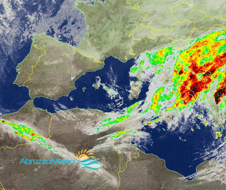 SITUAZIONE: La nostra penisola è interessata dall’arrivo di una perturbazione atlantica che, in queste ultime ore, ha favorito la formazione di un minimo depressionario, posizionato sul Tirreno centrale, in lento spostamento verso le regioni meridionali a partire dalle prossime ore. Di conseguenza il tempo è decisamente peggiorato al centro-sud, in particolare sulle nostre regioni adriatiche dove, nelle prossime ore, sono attese precipitazioni diffuse, localmente intense, anche a carattere temporalesco, soprattutto sulle zone collinari e costiere di Marche, Abruzzo e Molise. I fenomeni tenderanno ad interessare in maniera localmente intensa anche le zone interne e montuose, tuttavia le precipitazioni potranno risultare intense e persistenti sulle zone pedecollinari e costiere delle nostre regioni centrali, almeno fino alla serata-nottata di oggi. Un graduale miglioramento delle condizioni atmosferiche è previsto nel corso della giornata di giovedì, ad iniziare dalle Marche, in estensione verso la nostra regione e verso il Molise a partire dalla tarda mattinata e nel corso del pomeriggio, miglioramento che proseguirà nella giornata di venerdì anche se, come anticipato nei precedenti aggiornamenti, nel fine settimana la nostra penisola sarà interessata da un’intensa discesa di masse d’aria fredda provenienti dall’Europa settentrionale che, tra sabato e domenica, determineranno un nuovo peggioramento delle condizioni atmosferiche con forti venti di Tramontana, rovesci diffusi, anche temporaleschi, temperature in sensibile diminuzione e nevicate sui rilievi ma anche fino a bassa quota, probabilmente (ma è da confermare) anche a quote collinari.