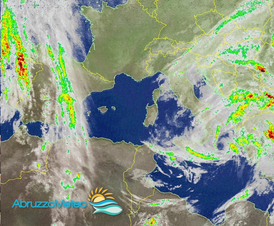 Sulla nostra regione si prevedono condizioni generali di cielo molto nuvoloso o coperto con precipitazioni sparse, più probabili nel Teramano, nel Pescarese e nel Chietino e sulla Valle Peligna, soprattutto a ridosso dei rilievi e lungo le aree costiere, anche se annuvolamenti e occasionali precipitazioni potranno manifestarsi anche nell’Aquilano, sulla Marsica e sull’Alto Sangro