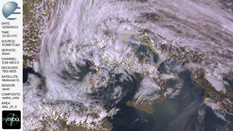 La perturbazione si sposterà lentamente verso le regioni ioniche, ma favorirà un ulteriore aumento dell’instabilità su gran parte delle centrali, specie nel pomeriggio