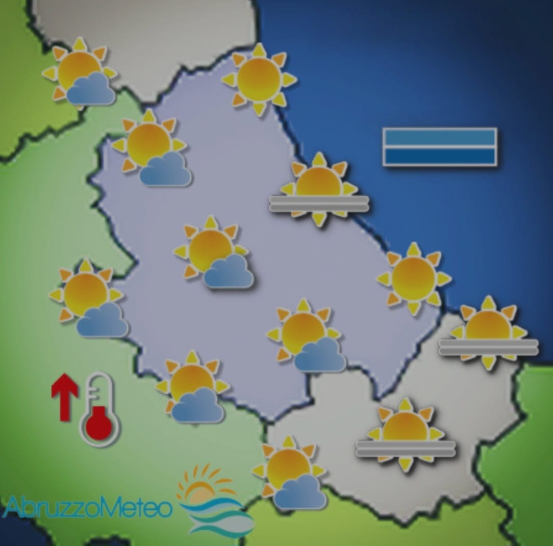 PREVISIONE. Sull’Abruzzo si prevedono condizioni generali di cielo prevalentemente sereno o poco nuvoloso; possibili estese velature a causa del transito di nubi alte e stratificate che tenderanno ad attenuarsi nel pomeriggio-sera e nella giornata di domenica. Non si prevedono sostanziali variazioni nella giornata di domenica: tempo stabile, cielo sereno o poco nuvoloso, temperature ben al disopra delle medie stagionali con punte massime localmente superiori ai +26°C/30°C, specie sulle zone collinari e nelle principali valli abruzzesi.