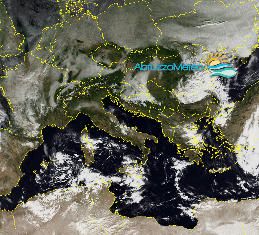 Sulla nostra regione si prevedono condizioni iniziali di cielo poco nuvoloso o parzialmente nuvoloso, specie sul versante adriatico, in particolare sulle zone collinari e pedemontane, dove non si escludono banchi di nebbia; foschie e banchi di nebbia interesseranno anche le valli interne della Marsica, dell’Aquilano e dell’Alto Sangro, in diradamento durante le ore centrali della giornata. La tendenza è verso una graduale e temporanea attenuazione della nuvolosità nel corso della giornata con ampie schiarite, tuttavia non si escludono addensamenti consistenti sul settore adriatico con possibili occasionali piovaschi, specie nel pomeriggio-sera, , mentre da domani la nuvolosità tornerà ad interessare la nostra regione con rischio rovesci dal pomeriggio-sera, specie sul versante adriatico.