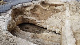 Un grande arco e una volta a botte sono i ruderi scoperti sotto piazza San Giustino a Chieti durante i lavori riqualificazione. Un arco in…