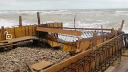 Il mare ha iniziato a demolire il cemento del cantiere sulla spiaggia a Fossacesia. “Si dissolvono nell’acqua salata le autorizzazioni rilasciate dagli enti”. Dispersi pezzi…