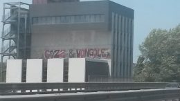 Il graffito gigante “Cozze & Vongole” che balza agli occhi sulla parete della Città della Musica dall’asse attrezzato, diventa “virale”. Le foto sta già facendo…