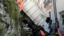 Ortona dei Marsi: autocarro dei rifiuti si sfrena e precipita