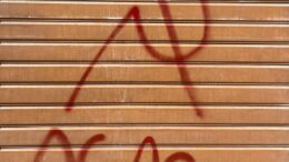Il disegno della falce e martello e la nota firma Acab a Pescara sulle serrande della sede di Fratelli d’Italia. Dura la nota dei meloniani…