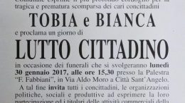 Città S.Angelo, lutto cittadino per Tobia e Bianca. Sospesi per lunedì 30 gennaio il servizio di mensa e le attività didattiche solo pomeridiane delle scuole di…