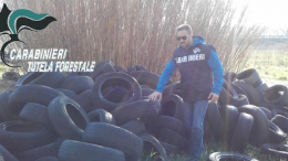 I carabinieri forestali del NIPAAF di Pescara, dopo il sequestro della discarica di pneumatici fuori uso, abbandonati lungo il fiume Saline, avvenuto a Montesilvano (Pescara)…