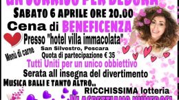 Sabato 6 Aprile alle 20:00 all’hotel “Villa Immacolata” San Silvestro, si terrà una cena di beneficenza denominata “Un Sorriso Per Debora”. Parte del ricavato sarà…
