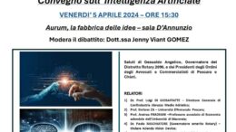 All’Aurum di Pescara venerdì 5 aprile un convegno dedicato all’Intelligenza Artificiale, modera Jenny Viant Gomez Organizzato da diversi Rotary club e dagli ordini degli avvocati…