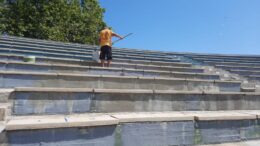 Flaiano ne avrebbe fatto un aforisma dei suoi tanto è assurdo quanto sta accadendo oggi a Pescara: operai a lavoro sulle gradinate del Teatro d’Annunzio…