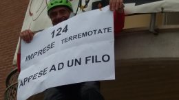 L’Aquila, tasse post-sisma: Cioni si appende per protesta al balcone di casa sua