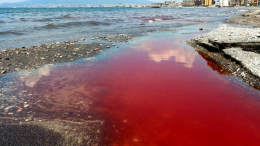 Mare colorato di rosso a Martinsicuro nel tratto antistante la frazione di Villa Rosa. L’effetto è dovuto a una micro alga planctonica, la Noctiluca scintillans,…