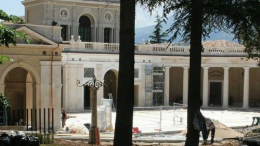 L’Aquila, piazza IX Martiri: sanpietrini contro gli operai della fontana del Fanciullo