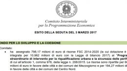 Pescara: dal Cipe 18 milioni per le periferie così come indicato nel Programma straordinario d’intervento per la riqualificazione urbana e la sicurezza. C’é dunque anche…