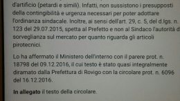 Divieto botti di fine anno: ordinanze comunali illegittime, lo certifica un parere del Ministero degli Interni recepito dalla Prefettura di Rovigo. Sorge il dubbio che…