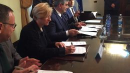Caserma Di Cocco Pescara: la firma del ministro Pinotti insieme a quelle del Direttore del Demanio Reggi, di D’Alfonso e Alessandrini per la consegna alla…
