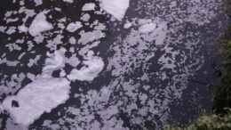 Schiuma bianca e acque maleodoranti nel fiume Aterno, nel tratto tra Onna e Monticchio dove si trova il ponte. L’acqua passa dalla schiuma bianca ad…