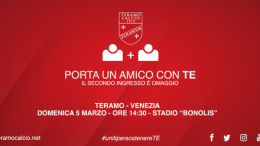 Teramo Calcio – Col Venezia “Porta un Amico con Te”. La società ha attivato l’iniziativa per agevolare l’afflusso dei tifosi domenica al Bonolis. La Teramo…