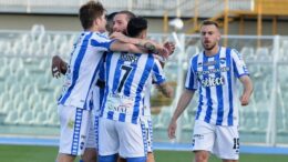 Play Off Pescara Carrarese, tanta sofferenza ma turno superato. Cernigoi (doppietta) salva i biancazzurri che torneranno in campo mercoledì all’Adriatico con il Gubbio. Ma servirà…