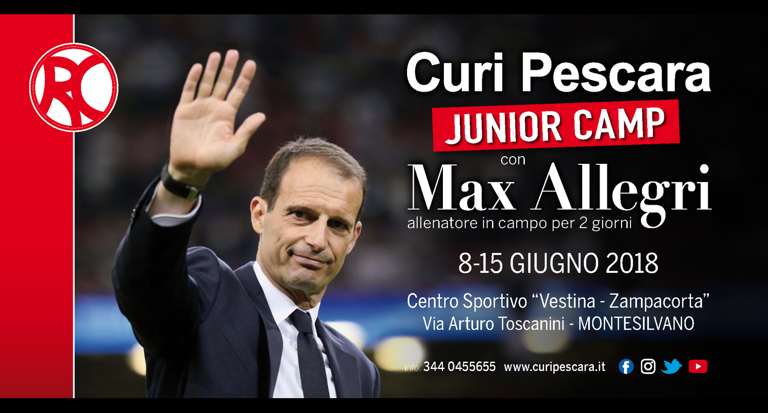 Allegri. Con l’umiltà che lo ha sempre contraddistinto, il tecnico della Juventus ha impreziosito il primo Junior Camp organizzato dalla Curi Pescara. Una giornata intera ad insegnare calcio ai più piccoli.
