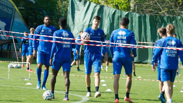Pescara calcio. Nessuna nuova positività al Covid tra i biancazzurri, la Asl autorizza gli allenamenti collettivi a partire da oggi pomeriggio. Dopo i test di ieri situazione invariata: i contagiati restano 8 (7 giocatori e un membro dello staff). Martedì la sfida con l’Entella (ore 14).