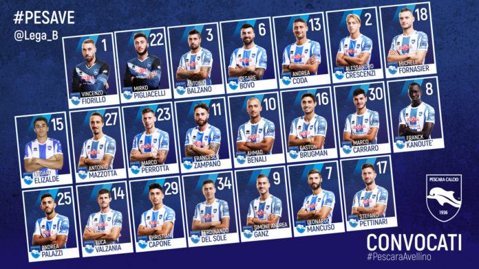Pescara Avellino. Non convocati : Campagnaro, Baez, Cappelluzzo, Latte Lath, Selasi, Coulibaly e Proietti. Tra gli irpini indisponibili Migliorini, Lezzerini e Gavazzi.