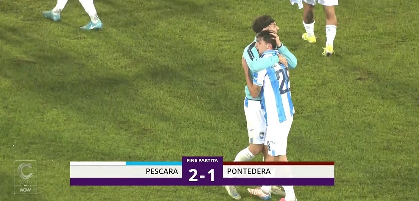 Pescara calcio: un cuore enorme, bellissimo vincere così. All’ultimo respiro piegata la resistenza del Pontedera (2-1). Premiata la straordinaria capacità di non mollare mai. Sesto successo consecutivo e primato consolidato. Domenica prossima in trasferta sul campo della Vis Pesaro. Inizio ore 12,30.