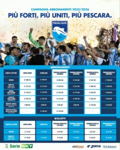 Per tutte le info: https://www.pescaracalcio.com/campagna-abbonamenti-2025-2026/