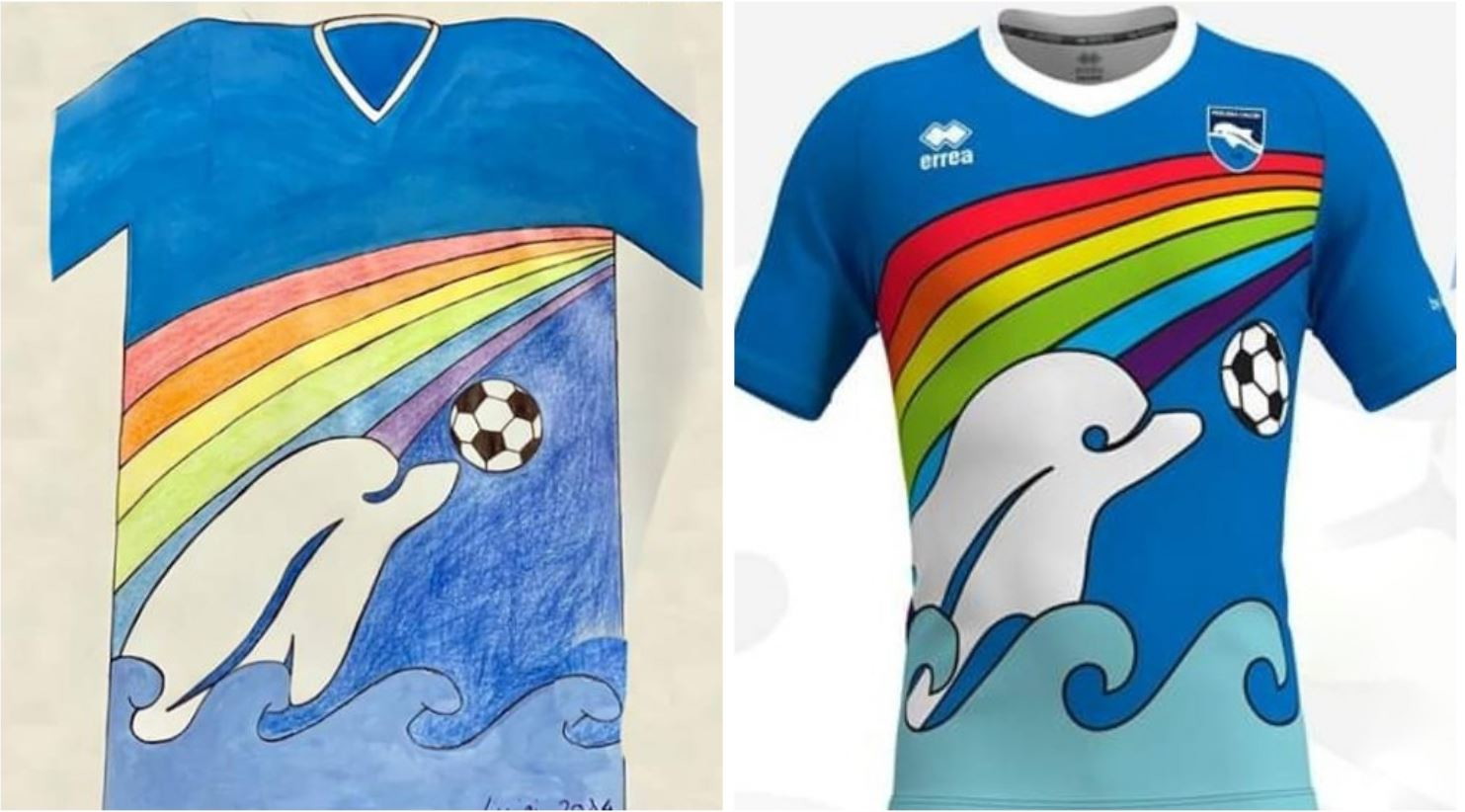 Pescara calcio. “Questa splendida maglia ( foto ) disegnata dal piccolo #Luigi è stata la più votata nel contest ‘Disegna la maglia Special del Delfino’. Verrà prodotta da @ErreaOfficial, venduta al pubblico e utilizzata dai giocatori #BiancAzzurri. Complimenti a tutti i partecipanti”. Questo è il testo del tweet del Pescara calcio, che nei giorni scorsi aveva lanciato un contest dedicato a tutti i bambini per disegnare la maglia dell’anno prossimo.