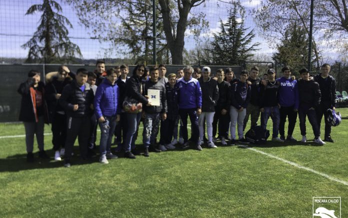 In foto il saluto ai #BiancAzzurri dei ragazzi dell’Istituto Alberghiero IPSSAR “De Cecco” di Pescara, accompagnati dalla responsabile #BiancAzzurra Gargano Ylenia e la Prof.ssa Maria Spernanzoni per il progetto “Il calcio e non solo”.