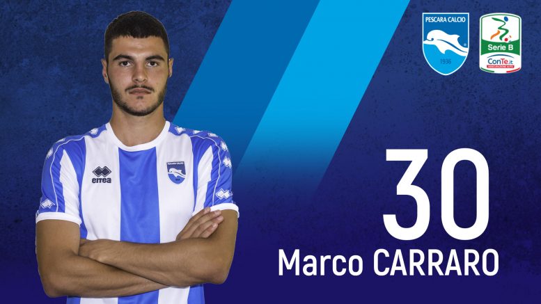 Pescara calcio. Il giudice sportivo ha squalificato per una giornata Carraro che, pertanto, salterà la sfida col Venezia. Tra i lagunari fermato per 2 turni Falzerano.