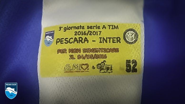 Pescara Inter per non dimenticare il tragico sisma dello scorso 24 agosto. Le due società hanno deciso di personalizzare le maglie della prossima sfida.