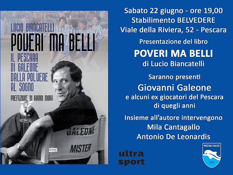 “Poveri ma belli”. E’ il titolo del libro di Lucio Biancatelli, ovvero la storia di un piccolo irripetibile capolavoro targato Giovanni Galeone. Nel 1987 fu serie A. L’anno dopo salvezza, l’unica finora centrata dal Delfino nel massimo campionato. Sabato, ore 19, la presentazione al lido “Belvedere”.