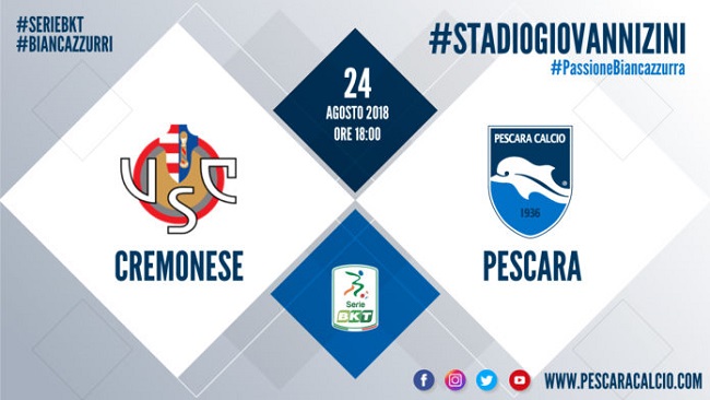Serie B Cremonese – Pescara. L’ultimo successo allo “Zini” risale al 20 – 12 – 1998 ( 0 – 3 ). Tra i lombardi out Piccolo e Paulinho. Pillon senza Palazzi e lo squalificato Kanoutè. Forse Perrotta preferito a Scognamiglio. Dubbio Mancuso – Marras. Le probabili formazioni. 121 tifosi al seguito.