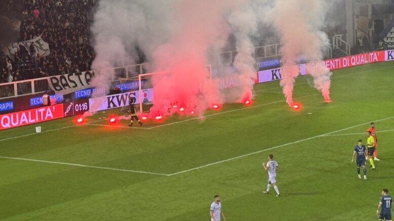 63′ – Gioco nuovamente fermo per un fumogeno lanciato in campo